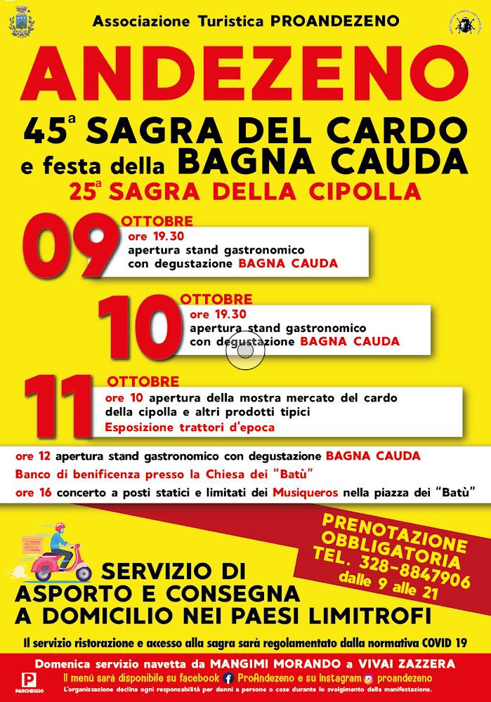 Secondo la leggenda, in origine era il piatto forte del banchetto che festeggiava la fine della vendemmia. L'appuntamento è per domenica 11 ottobre: Sabato a cena e domenica a pranzo menã¹ a base di bagna cauda con verdure, passatelli in brodo, bollito misto, sorbetto. Torna ad andezeno (to) la storica sagra del cardo e la festa della bagna cauda, sagra di paese che si svolge da 45 anni a pochi km da torino, nonchè la sagra della cipolla piattellina, giunta alla sua 25° edizione. Ebbene sì, è notizia di poche settimane fa che l' edizione 2020 di questa importante sagra della bagna cauda è stata confermata e si terrà dal 27 al 29 novembre ad asti.